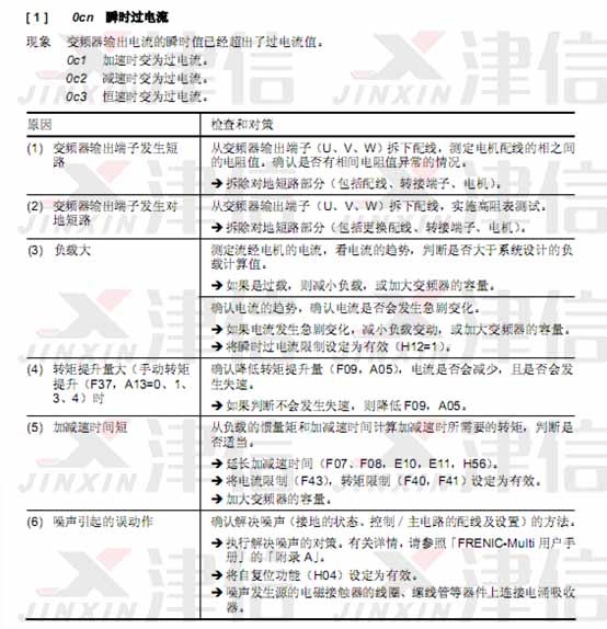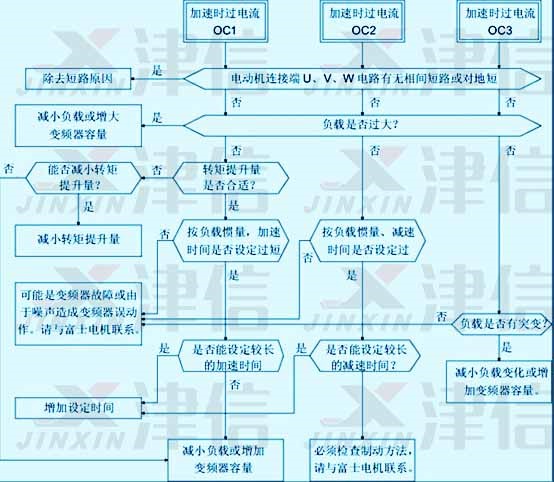 富士變頻器OC報(bào)警時(shí),并不意味著一定是變頻器出現(xiàn)了故障,有可能是由于某些設(shè)定或者干擾導(dǎo)致,當(dāng)然也有可能是由于部件異常,常見判斷故障原因和解決的步驟如下: